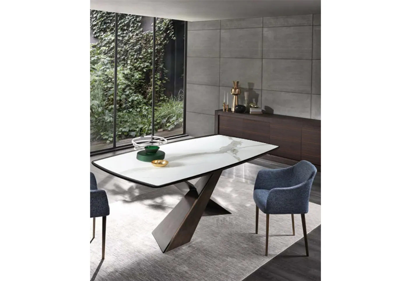 Living Table in wood and ceramic by Riflessi: made with high quality materials, this table is characterized by its strong lines on the top and its elegant and refined base. The well-known and renowned brand Riflessi, specialized in the production of ceramic furniture, has chosen a wide variety of finishes, shapes, and tones for its line. If you are looking for a high-quality dining table, contact us to receive information and quotes on the model shown in the photo. A model like the one in the picture, paired with the right chairs, will enhance the atmosphere of the rooms dedicated to socialization in the home.