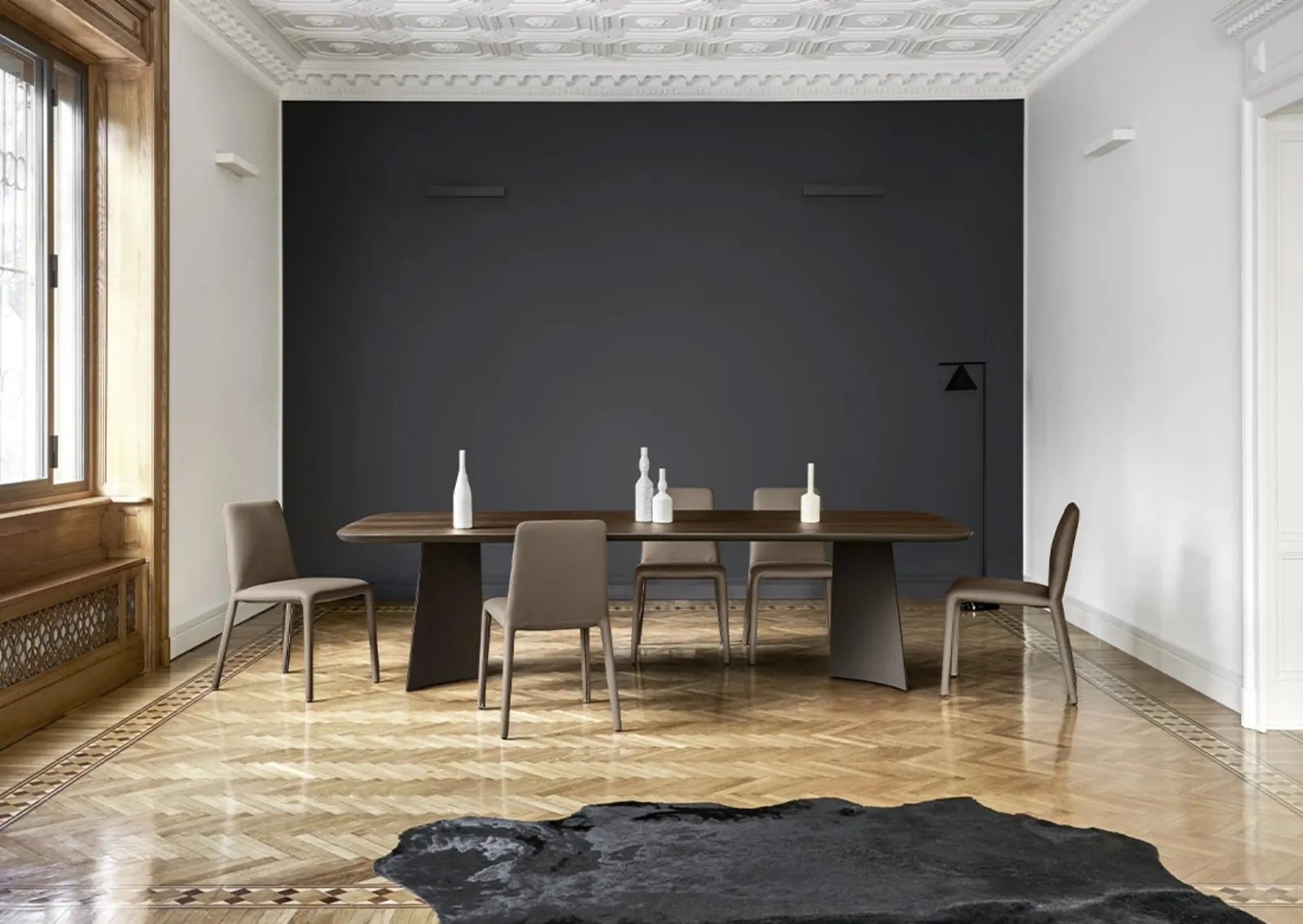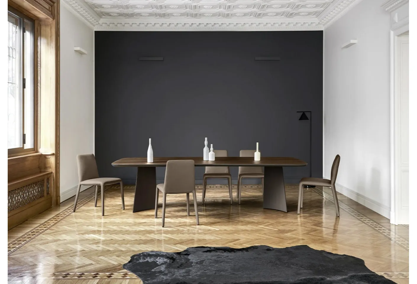 Do you want to complete design spaces? Find out more about fixed design tables: the Poliedro Rovere Termotrattato dining table model is waiting for you.