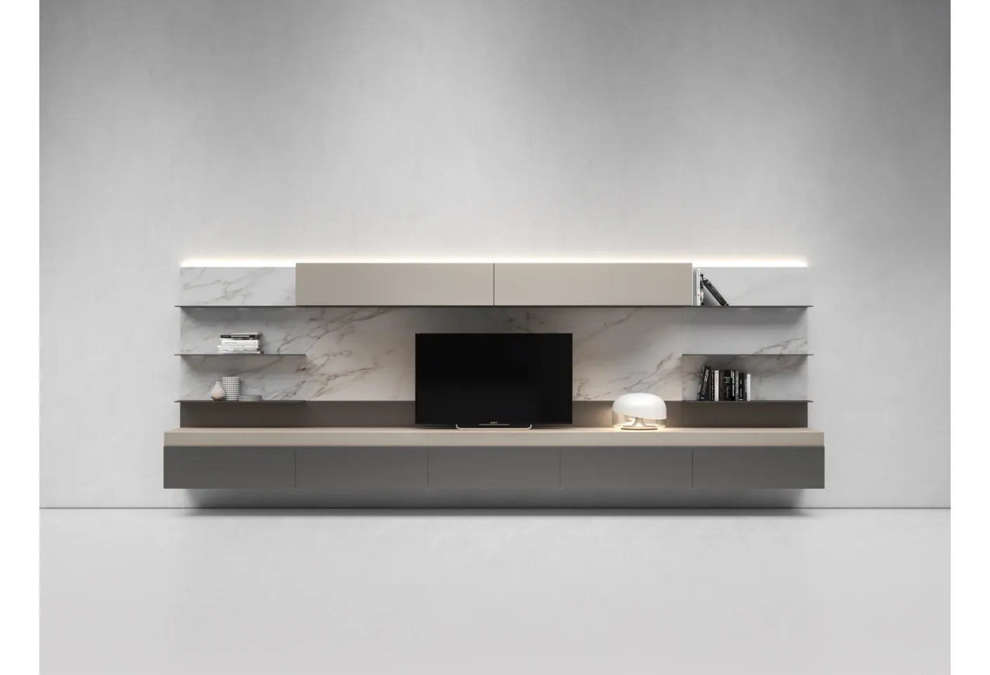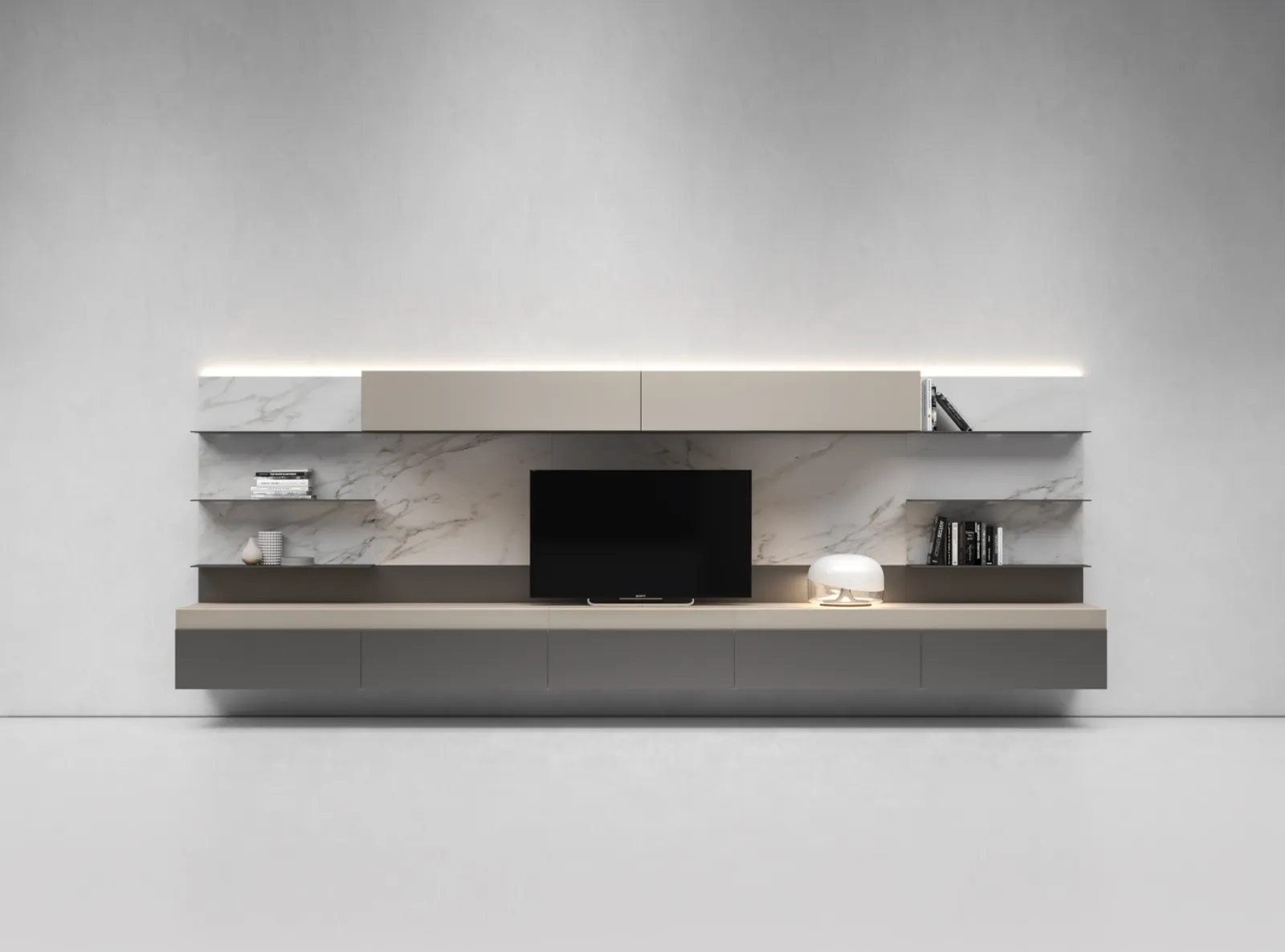 Click and get information about the I-ModulART E TV stand by Presotto: made in matte lacquered finish, it is the perfect product for modern spaces.