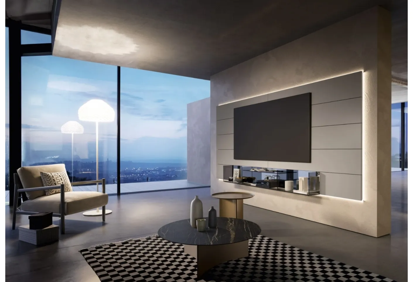 Click and discover the TV wall unit Sangiacomo: this TV stand in matte lacquer is one of the most original solutions for the living room.