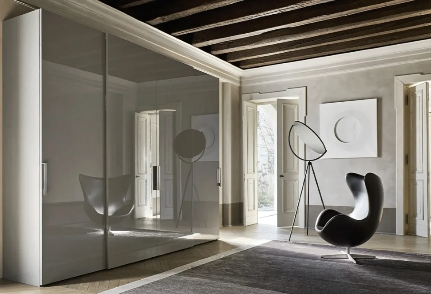 Are you looking for a glossy lacquered wardrobe? Click and discover Sangiacomo's wall wardrobes with sliding doors.