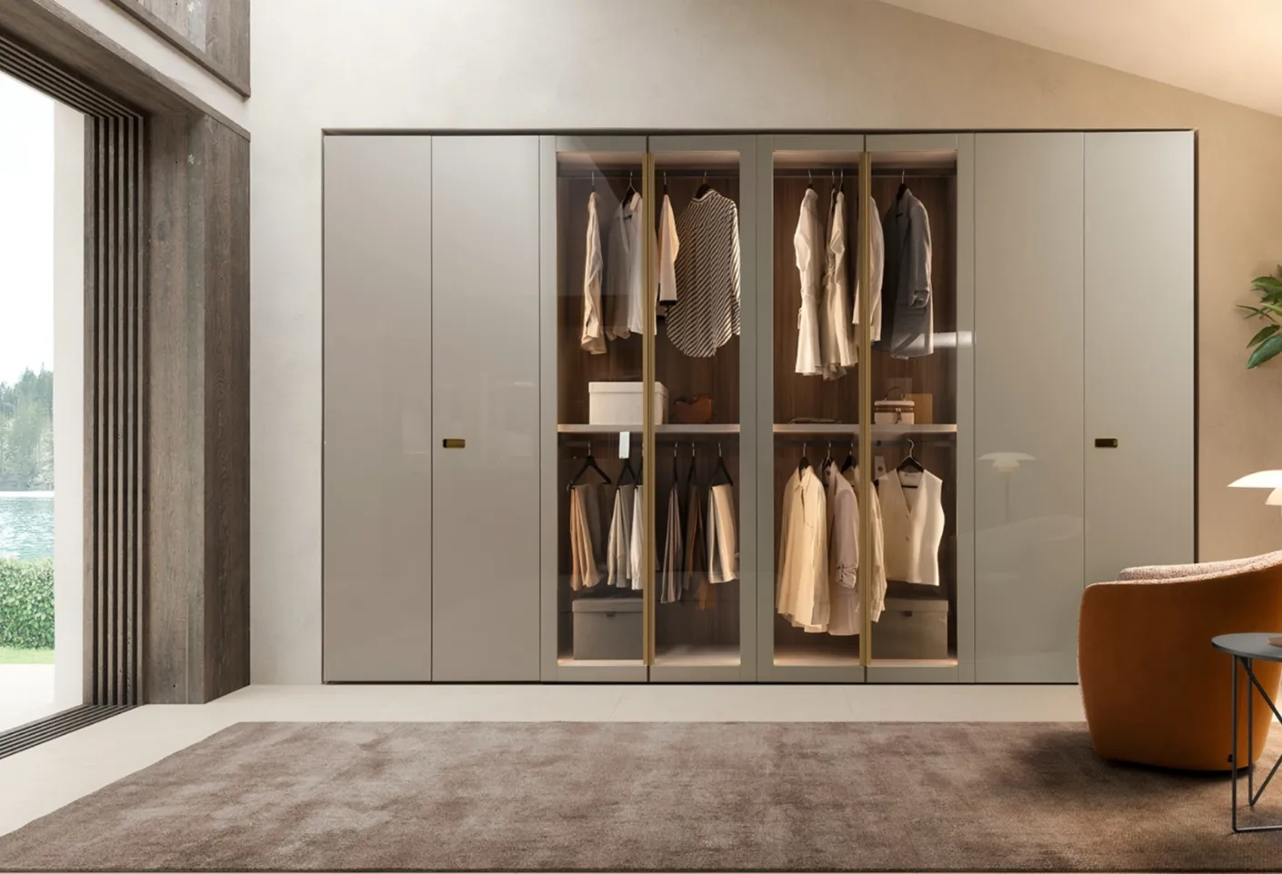 Are you looking for a glossy lacquered wardrobe? Click and discover wall wardrobes with hinged doors by Presotto.