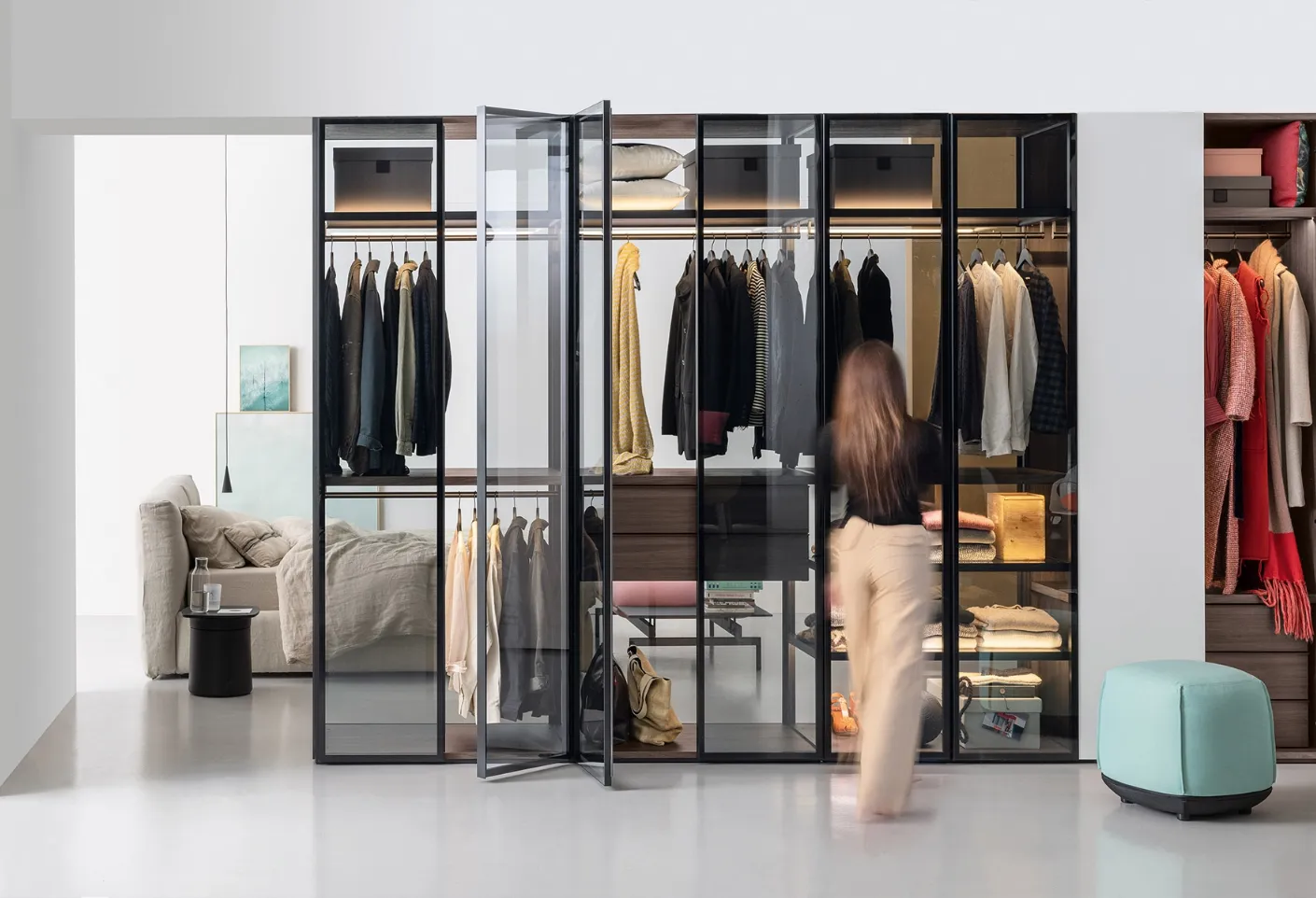 If you want modular wardrobes with hinged doors, click and discover the Kristalia Aria Telaio glass wardrobe.