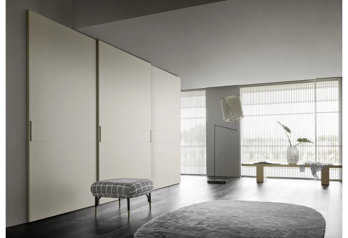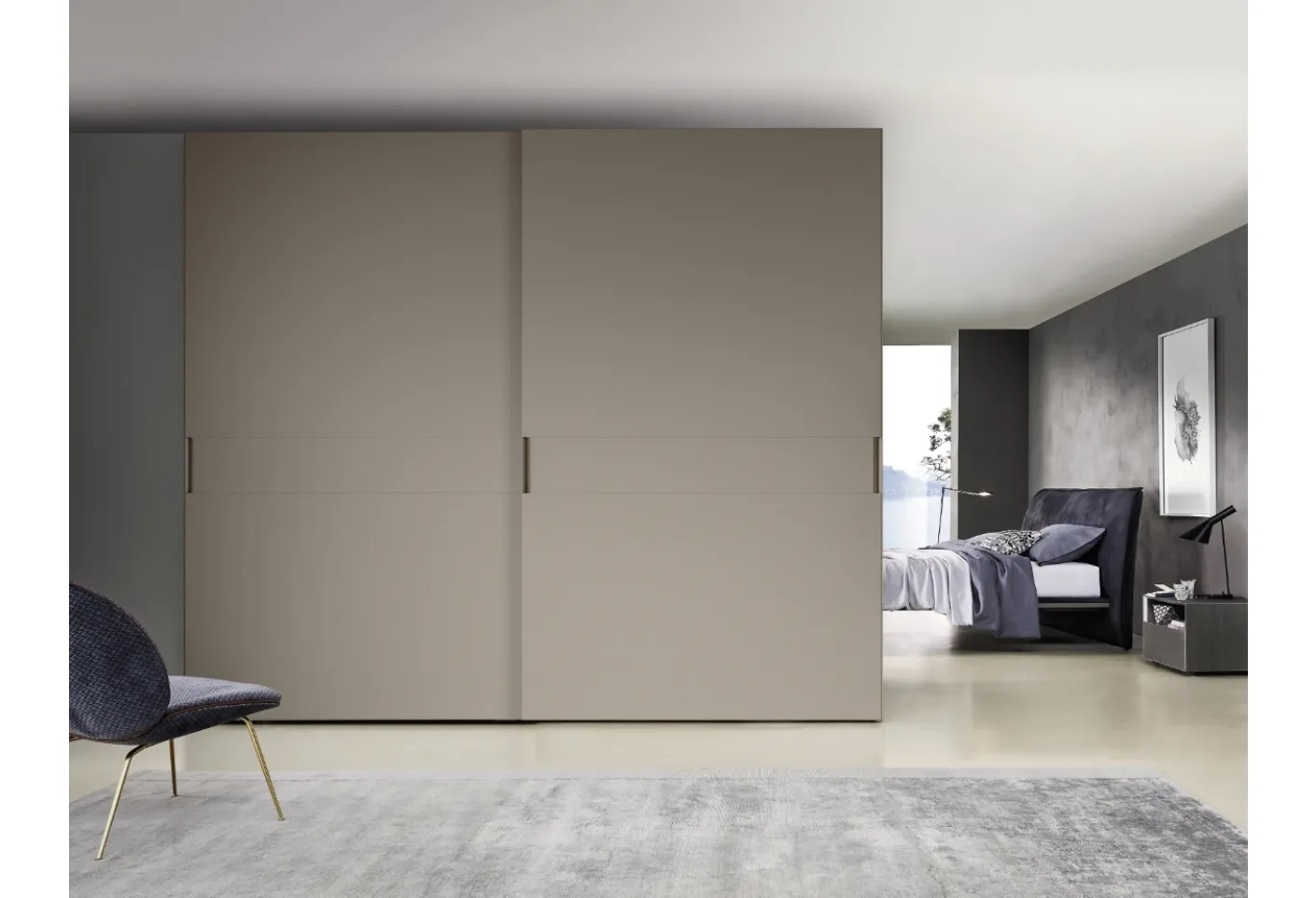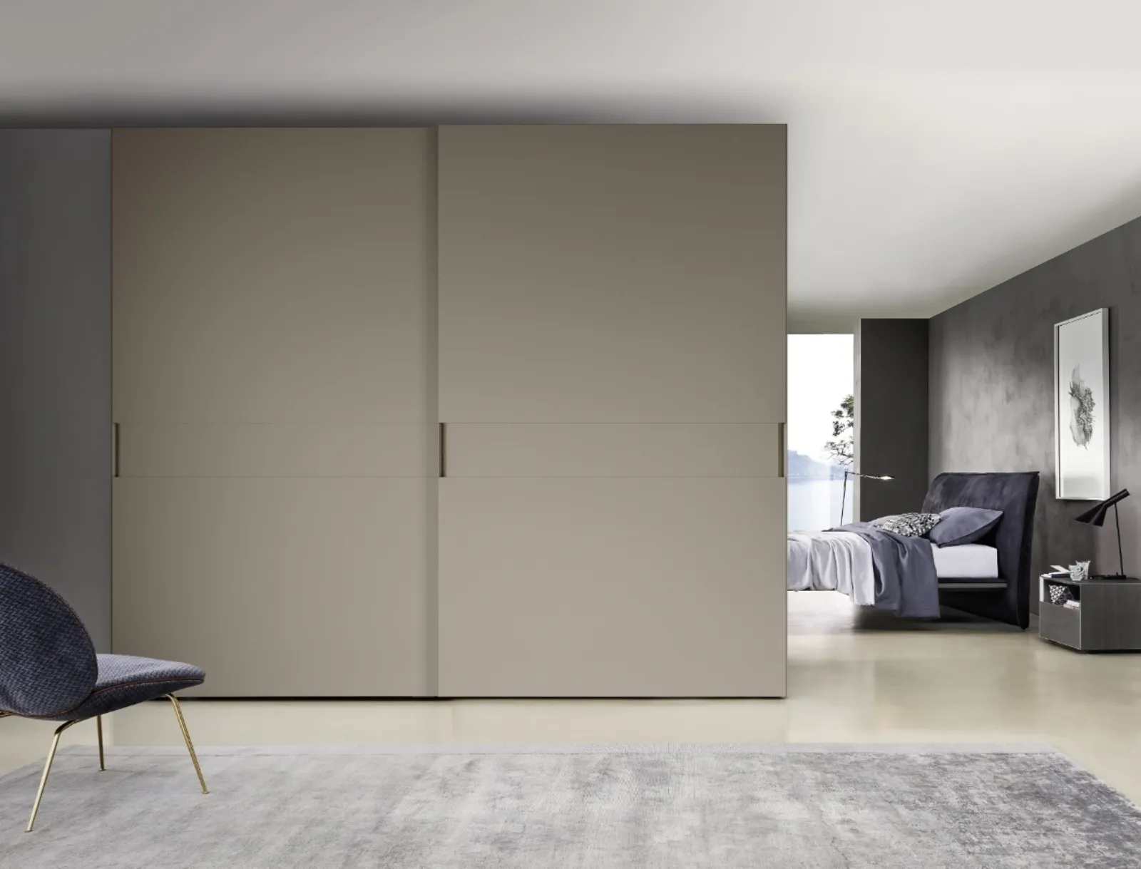 Here is the Meridian wardrobe by Sangiacomo in matte lacquer! A rich range of wall wardrobes with sliding doors.