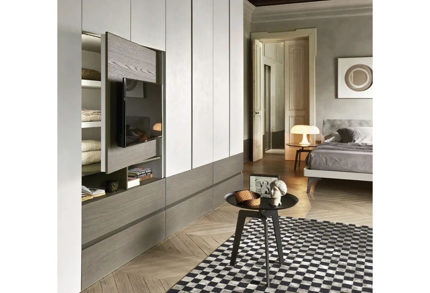 Contact us and discover more about a rich catalog of Home Furnishings to design the bedroom area with high aesthetic content melamine containers. To complete the furnishing project in a functional and aesthetically pleasing room, we have selected for you the most beautiful and current Sangiacomo solutions, different in terms of class, size, material and accessories. This product, among the many wall-mounted models with hinged doors from Sangiacomo, is a symbol of resistance, elegance, and lasting sophistication. In our line of modern wall-mounted wardrobes with hinged doors, you will also find the model featured in the photo, ideal for those seeking functionality and style.