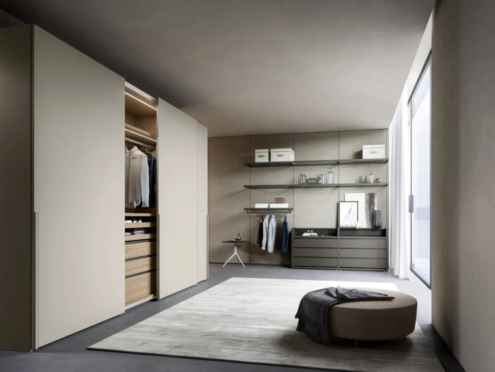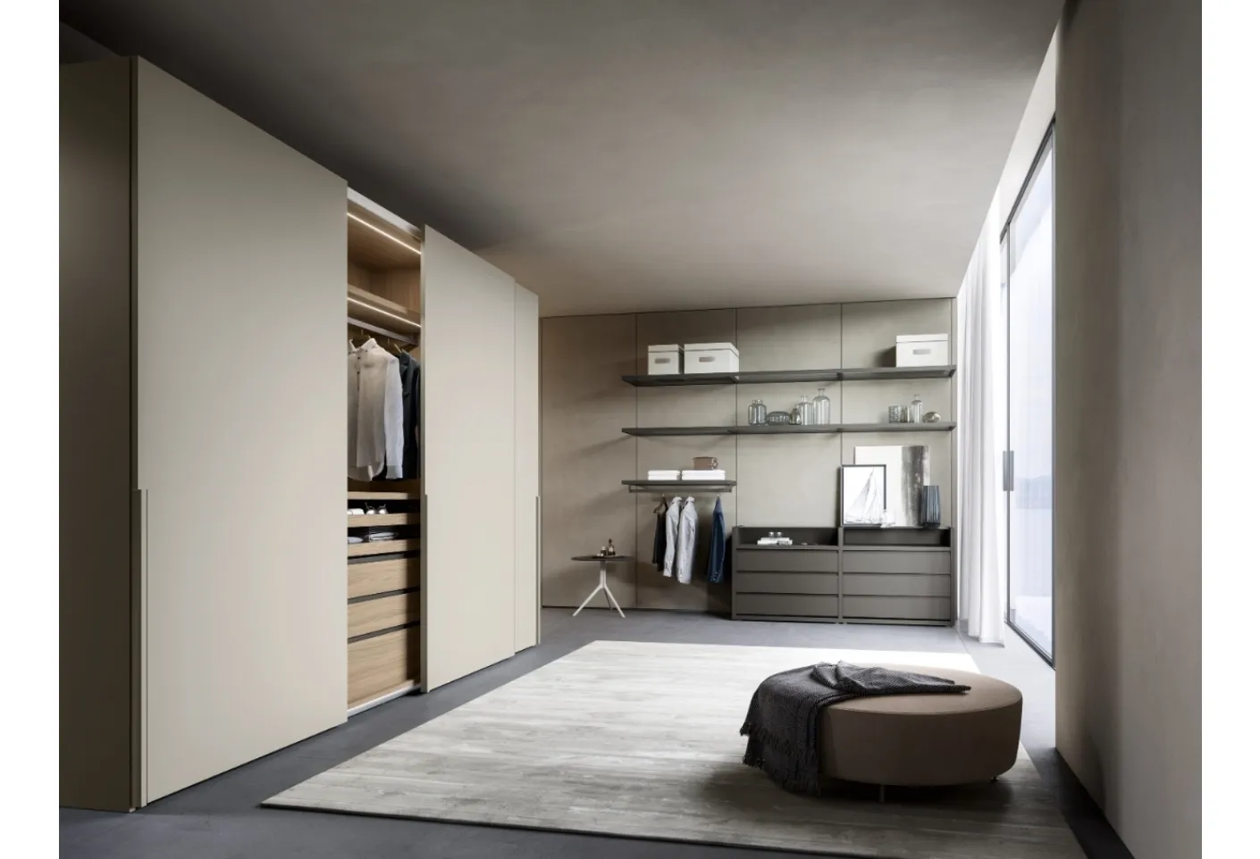 We present the wardrobe Tratto Opaco Corda in matt lacquered Sangiacomo! A rich catalog of built-in wardrobes with sliding doors.