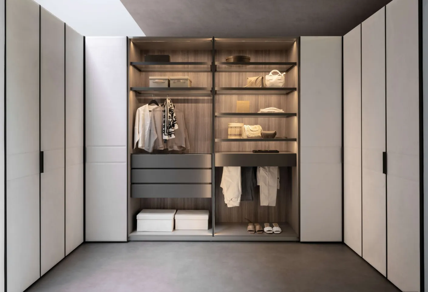 In our line of Wardrobes walk-in closets with hinged doors, you can also find the model visible in the photo, perfect for those looking for functionality and style. This solution, among the many models of walk-in closets with hinged doors by Presotto, guarantees lasting robustness, style, and sophistication. To complete the furnishing concept in a beautiful and functional bedroom, we have selected for you the most beautiful and captivating Presotto solutions, different in taste, size, finish, and accessories. Contact us and receive information on a rich catalog of Home Furnishings to design the sleeping area with storage furniture in high aesthetic content melamine. Technopolis Free Walk-in Closet by Presotto: fill out the form for information and quotes and design your home as you imagined it.