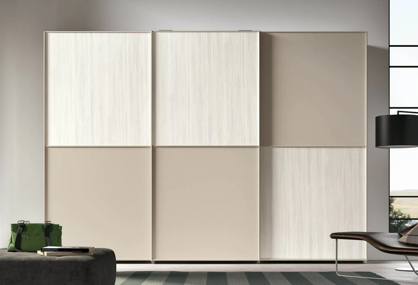 In the showroom, you will find the most captivating proposals of Home Furnishing, dressers, and bedside tables on the market, different in terms of good taste, size, and colors to perfectly complete a beautiful and high-quality bedroom. This wardrobe is ideal for being placed in a setting furnished with modern furniture and accessories, perfectly combining functionality and style. The renowned company Clever offers a diverse production of sliding door wardrobes, defined by exclusive design and necessary functionality. To find inspiration in completing your furniture, visit us and discover a wide range of furniture and accessories, including this exclusive and eclectic wardrobe. Twin wardrobe with sliding doors by Clever: fill out the form for information and quotes and furnish your bedroom as you have always imagined.